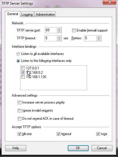 dvg почему-то не видит tftp сервера (использую tftpd32), ftp и http тоже не видит