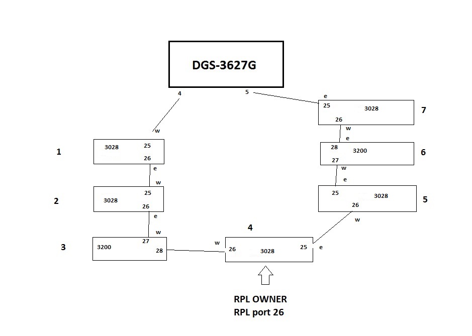 2.Я извиняюсь, не верно топологию указал, файлик со схемой перезалил , в кольце большая часть это DES-3028 H/W: A2; F/W:2.92.B004.