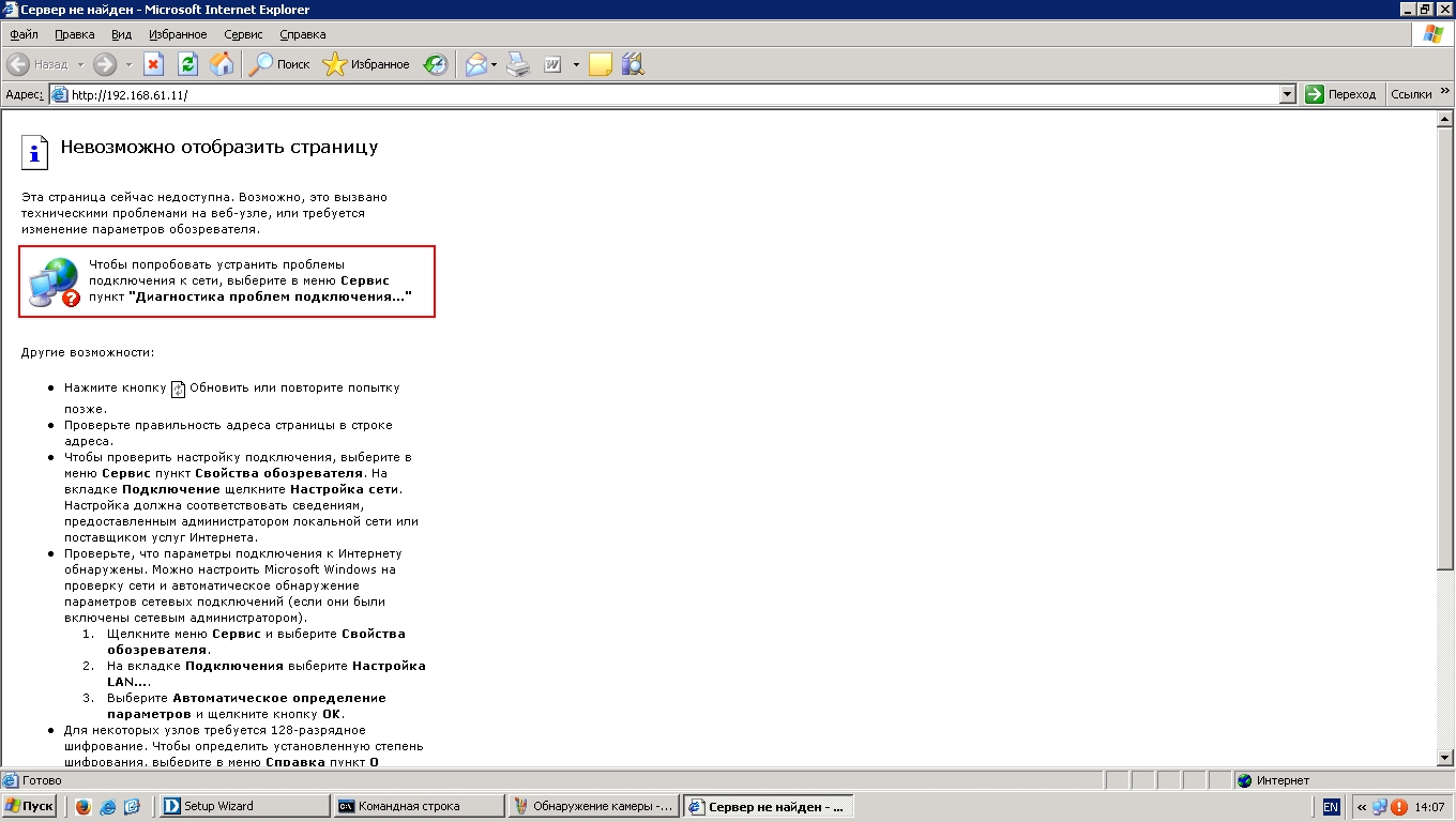 Есть IP камера D-Link DCS-6113, которая установлена в локальной сети. Она работала неделю, доступ был, запись видео была. Но в один прекрасный день к камере доступ прекратился. Драйвер для камеры установлен D-Link Setup Wizard SE. D-Link Setup Wizard SE определяет камеру, MAC адрес, но при попытке открыть ее в браузере, пишет что страница недоступна и не может быть открыта. При всем при этом камера пингуется. Когда мы ее купили все было нормально и доступ был. Через неделю перестала работать.