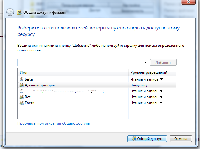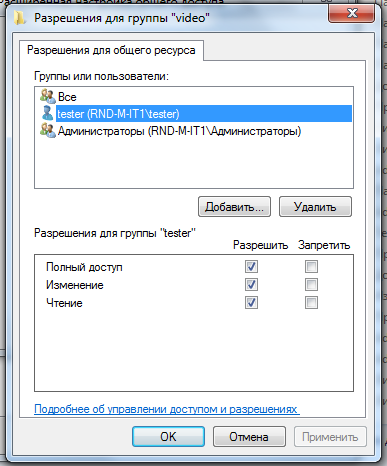 Создал Локального пользователя tesrer. дал ему все права на Шару..