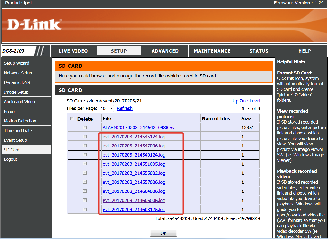 При включении на них SD карт уже не получиться получить такого эффекта как выше у камеры, при любых настройках SD получаем на FTP файлы во временном интервале две минуты, т.е. пример ....132814...avi и ....133014....avi. Изменение значения Maximum duration до 53 роли не оказывает.
