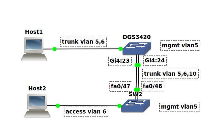 На DGS настроены East и West порты в сторону колец. Довлены наборы vlan в список protected_vlans. Все то же самое настроено на коммутаторах доступа.