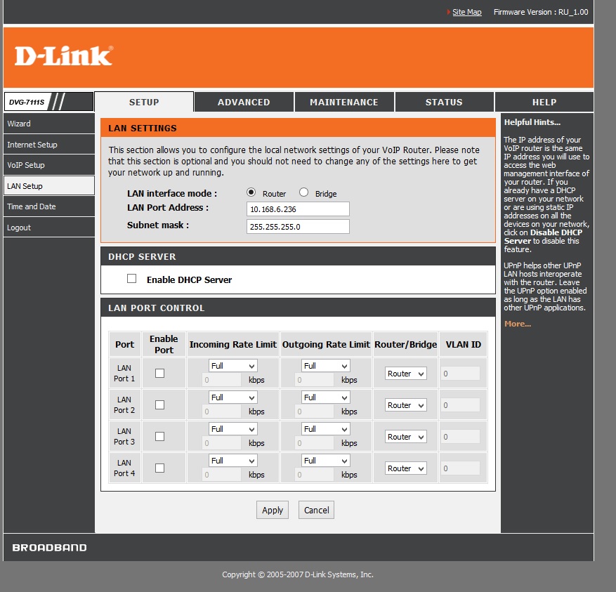 Обновление прошло нормально, но теперь в веб-интерфейсе (Setup - Lan Setup) показывает четыре LAN порта вместо одного.