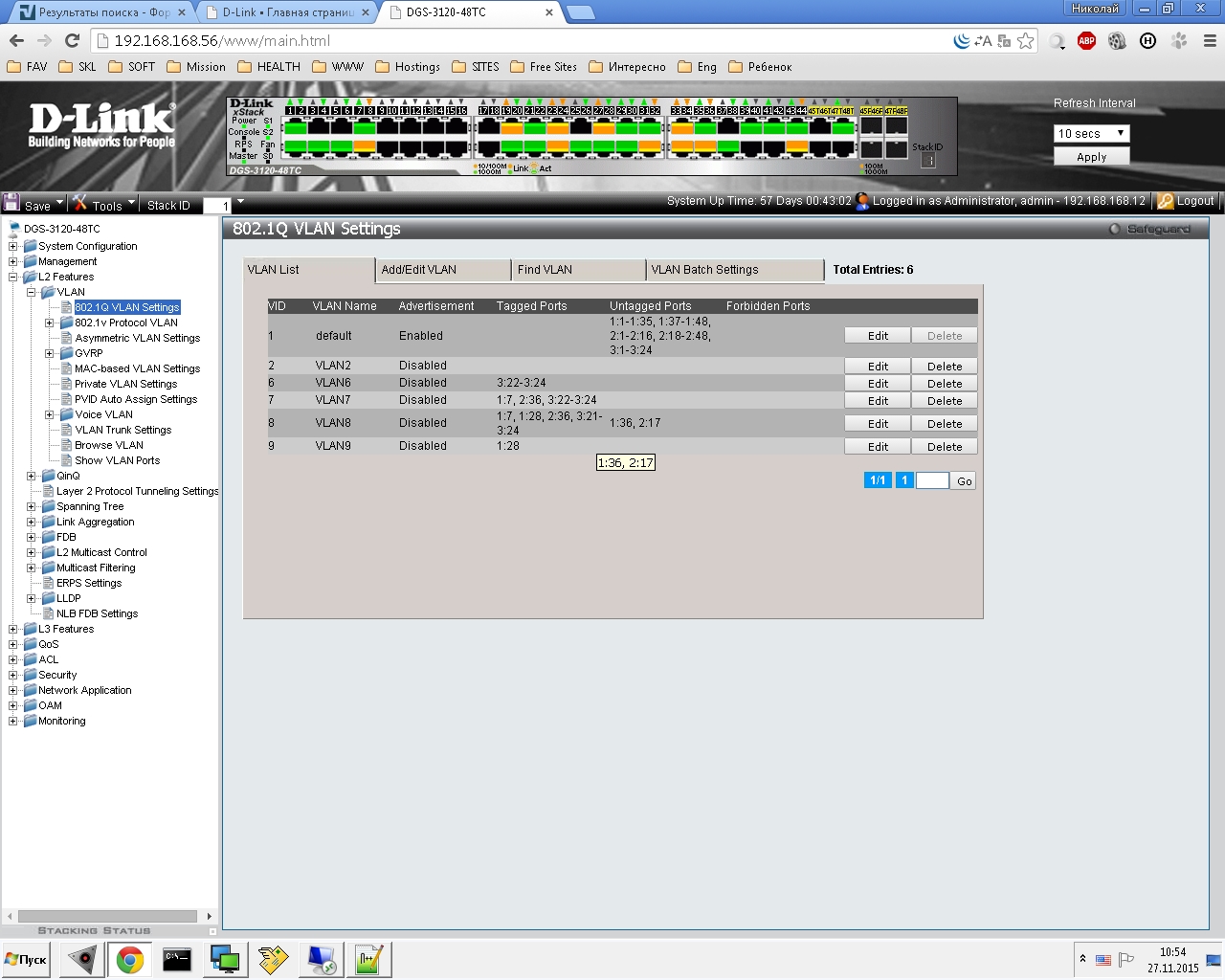 У Нас есть стек коммутаторов D-LINK DGS-3120 (3 шт. 48/48/24)