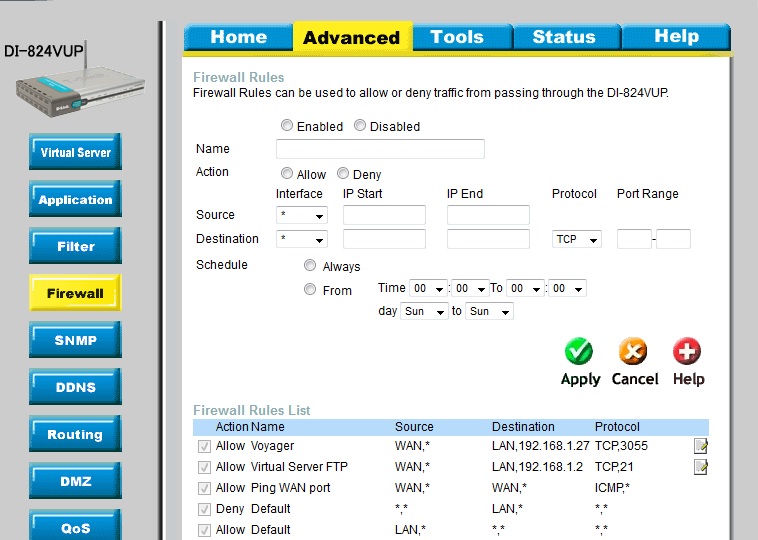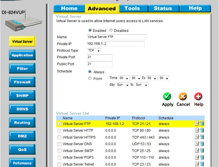 На данном устройстве DI-824VUP (с прошивкой V2.10b10(beta01)) не получается настроить проброс портов.