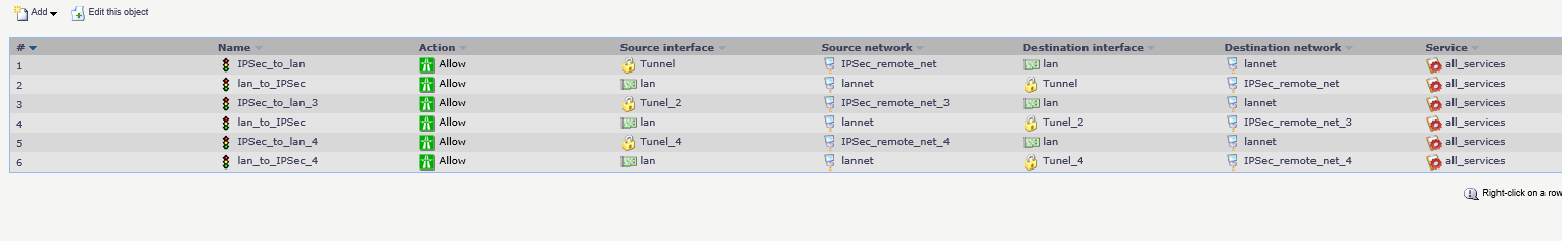 Если шлюзом является DFL - то необходимо прописать правило для icmp вида ipsec/remote_net core/lan_ip icmp-all Тем самым вы разрешите пинги на lan_ip DFL. Для обратного пинга ничего на DIR прописывать не надо, чтобы пинговалась сеть за DIR - необходимо, чтобы DIR являлся основным шлюзлом и все антивирусное ПО, а также всевозможные ваерфолы и брендмауэры были отключены, это уже настройки ваших ОС. Изначальная проблема решена - тему закрываю.