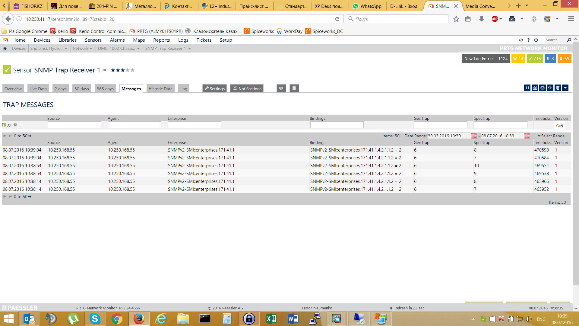 У нас установлена программа мониторинга оборудования по SNMP - PRTG https://www.paessler.com/prtg