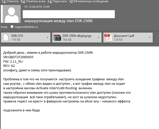 Все еще жду от вас письма с описанием проблемы маршрутизации VLAN.