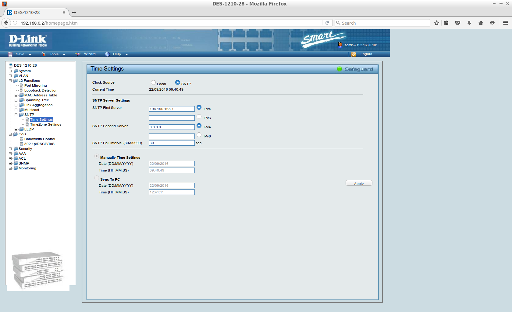 Благодарю. Я смотрел уже весь раздел SNTP и пробовал всякое. Логичнее всего во вкладке "SNTP" -> "TimeZone Settings" выставить правильный часовой пояс и сохранить настройки. Но после изменения часового пояса, кнопка "Apply" не нажимается (в других вкладках без подобных проблем). Аналогично не включить функцию "Daylight Saving Time" по той же причине. Соответственно, настройки без нажатия этой кнопки, не сохраняются.