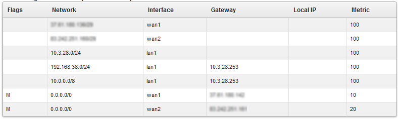 Интерфейсы wan1 и wan2 объединены и настроено правило с NAT'ом. Изображение