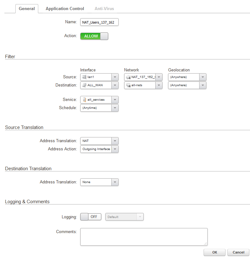 Совет: Не используйте в IP- и Routing-правилах сочетание any/all-nets нигде, кроме временных правил. Иначе возможны бреши в безопасности и несрабатывание последующих правил.