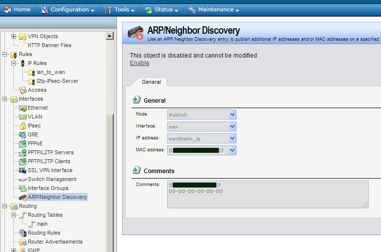 9. Прикрутил Внешний IP ARP-ом (но не помогло - отключил)
