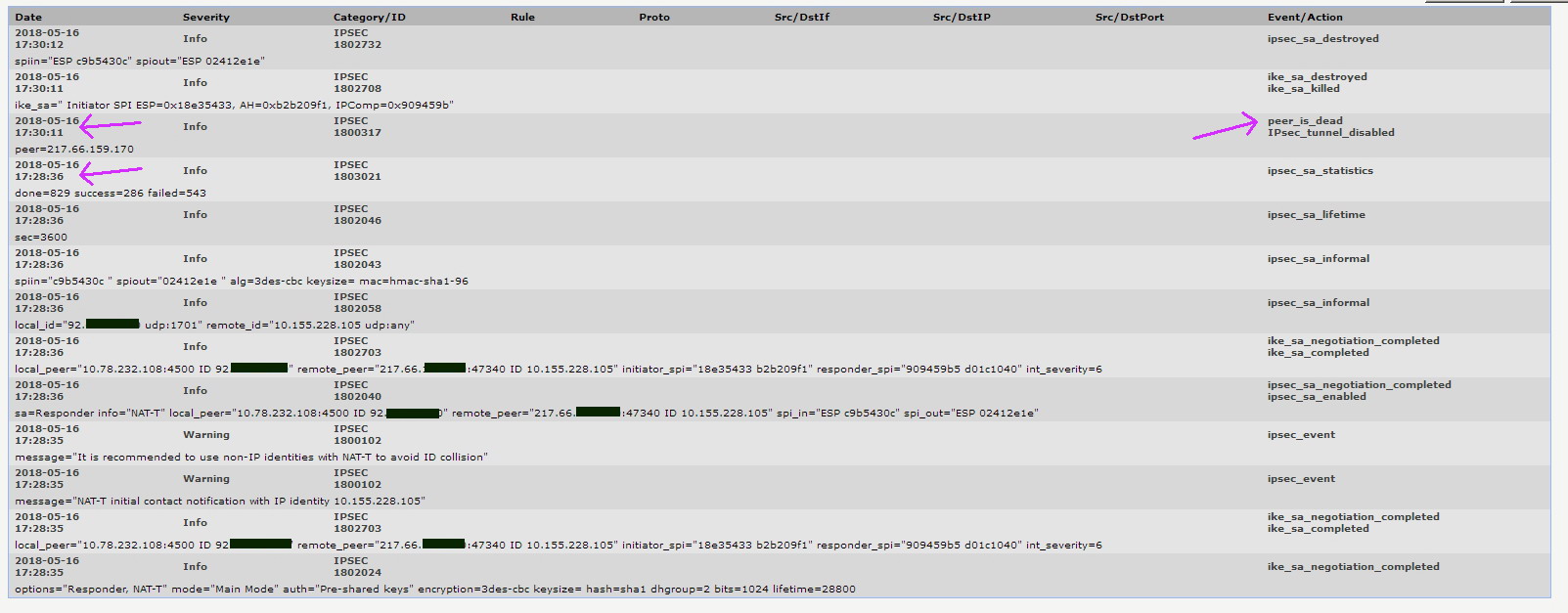 А потом в руководстве по DFL есть раздел про отладку IPSEC VPN (раздел 9.4.5), там описана полезная утилита ikesnoop, рекомендую.