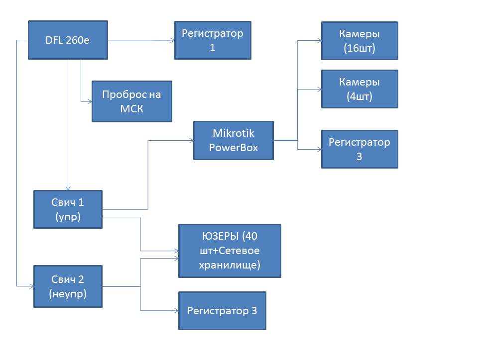 6) Недавно попросили на один регистратор сделать проброс портов до центрального офиса, с целью отслеживать нарушителей, которые кнопки в лифтах жгут. После 2х дней танцев с бубнами различного веса, назначения и формы, проброс сделал, но скорость передаваемого сигнала руководство не устроило. Все это усложняется тем, что регистратор в основной сети, а камеры в дополнительной.