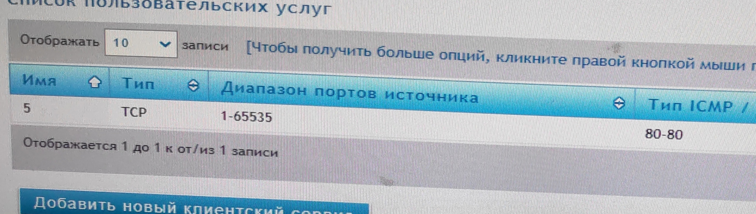 Когда создавали правило файревола надо было указать не "ANY", а тот сервис который создали. в вашем примере это имя "5"