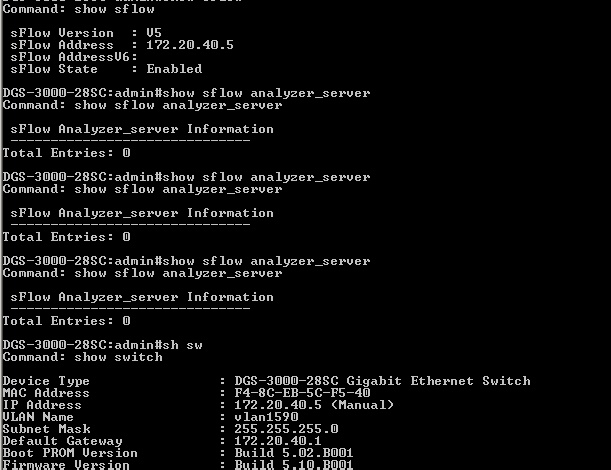 create sflow flow_sampler ports 1-28 analyzer_server_id 1 rate 1000 tx_rate 0 maxheadersize 256