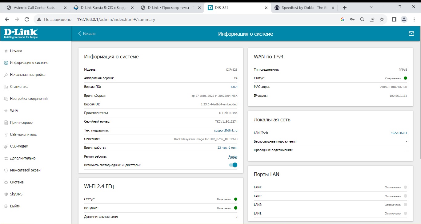 Роутер DIR-825/R4, прошивка 4.0.4 (самая новая на сайте). Комп подключен к нему через кабель. Входящая от провайдера скорость сильно режется роутером и на выходе прыгает в диапазоне 20-80 М (с исходящей все нормально - 95 М). Стоит переткнуть кабель напрямую, без роутера, как входящая скорость стабильно держится на отметке 95М. Опять пускаю интернет через роутер – 50-60-20-70-80 и т.д. Мбит/с. Т.е. входящая от провайдера скорость мало того, что значительно подрезается роутером, так еще и прыгает в четыре раза, притом что от провайдера стабильно приходит 95М. Менялись LAN-порты, кабели, прошивки, сбрасывались настройки, но результат один и тот же. Кстати, с предыдущей прошивкой 4.0.3. скорость не прыгала в четыре раза, но зато подрезалась роутером еще сильнее - до 12-14М! Причем выяснилось, что это не брак конкретного экземпляра, т.к. это уже третий (два вернул в магазин) DIR-825/R4. И все три одинаково режут скорость, т.е. совершенно не соответствуют заявленным производителем характеристикам. Кто–то вообще в D-Link, в Рязани или еще где тестирует модель роутера прежде, чем выпусить ее на рынок и поставить в магазины? Как вообще можно выпускать модель, которая вместо 95М выдает 13М (с родной прошивкой 4.0.3) ??? Ладно бы там какие навороты не работали, но основную-то и самую простую фунцкцию устройства можно было проверить? Когда выпускали прошивку 4.0.4 скорость на выходе роутера никто из ее разработчиков не проверял, что ли? С момента выхода последней прошивки 4.0.4 прошло уже больше года, а новой (которая выдавала бы стабильные 95М, а не прыгающие 20-80М) так и нет. D-Link, прошу пояснить, как быть с этой моделью роутера? Можно ли и когда ждать прошивку, которая не будет резать скорость? Если же софтом это не меняется, когда ждать отзывную компанию по данной модели?
